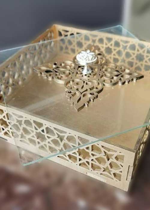 - 🪜Size: ply wood , Exclusive laser Cut, 24X24 inch ,height 7 inch, in top acrylic glass.